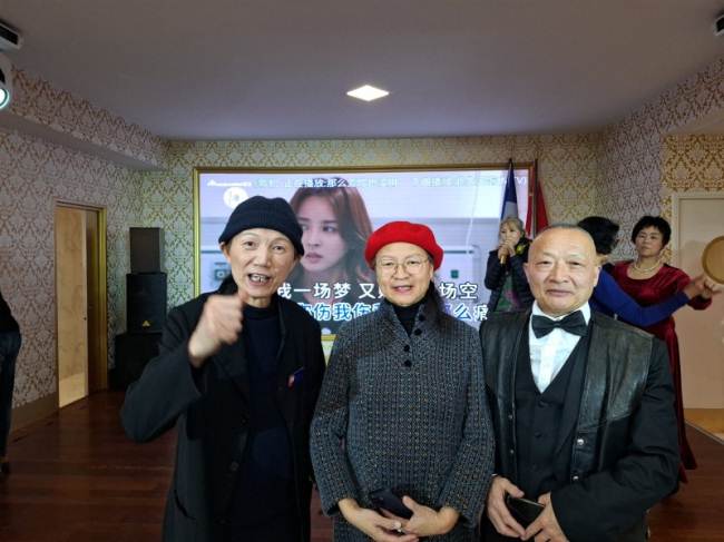 晚会间,艺术家纷纷“献艺”,朋友相互交换祝福。沈斯先生持画笔记录晚会情景 斌与【马来西亚侨团】主席 叶俊聪先生演唱了三国演义电影插曲【滚滚长江东逝水】。巴黎【知音团】艺术家朋友参加了众多节目演出